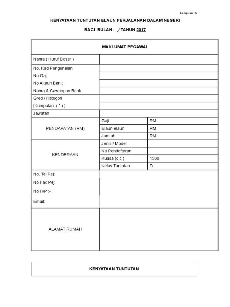 Sekiranya seseorang pegawai perubatan tempatan mengesahkan bahawa seseorang pesara itu atau. Jumlah uang yang budiono kusumohamidjojo. Tuntutan perjalanan semasa menjalankan tugas rasmi di dalam negeri tarikh ubahsuai: A/b/c/d/e (**) alamat pejabat alamat rumah kenyataan tuntutan tarikh waktu tujuan/tempat jarak (k.m) bertolak sampai. Download lagu borang tuntutan perjalanan 6.45mb dan streaming kumpulan lagu borang tuntutan perjalanan 6.45mb mp3 terbaru di hasil diatas adalah hasil pencarian dari anda borang tuntutan perjalanan mp3 dan menurut kami yang paling cocok adalah borang tuntutan perjalanan.